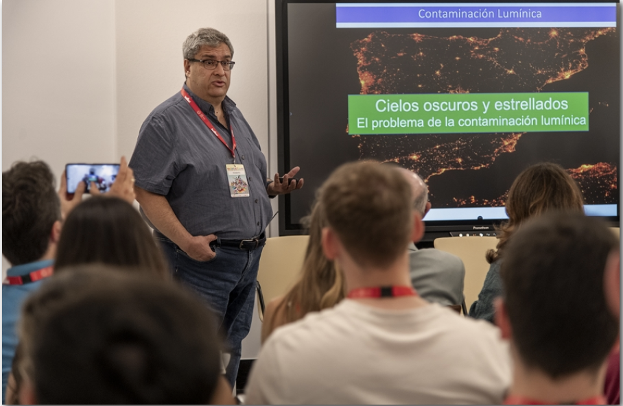 El catedrático del departamento de Física de la Tierra y Astrofísica de la Universidad Complutense, Jesús Gallego, ha cerrado el curso de verano “De Madrid al cielo: Talento e innovación para el espacio”, con una conferencia sobre la contaminación lumínica y la manera de luchar contra ella. Gallego, especializado en galaxias lejanas, lleva algunos años implicado en diferentes proyectos para la investigación y la toma de decisiones en materia de gestión de la iluminación y protección del cielo nocturno, que “es un patrimonio cada vez más escaso”. En esta lucha es fundamental, de acuerdo con él, la ciencia ciudadana, pero también la colaboración de los políticos, “en los que no se ve una falta de voluntad, pero sí un gran desconocimiento sobre este tipo de contaminación”.